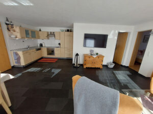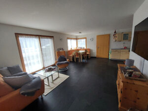 - Schöne Wohnküche mit Geschirrspüler, Backofen, Glaskeramikherd, grossem Kühlschrank, Wasserkocher, Toaster, Filter-Kaffeemaschine, Nespresso-Maschine mit 3 verschiedenen Kapseln (Stk. À Fr. 0.50), Raclette- und Fonduegeschirr, Vorrat an Gewürzen und Küchentücher sind vorhanden.