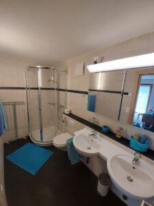 - Badezimmer mit Bodenheizung und Dusche, WC und Doppellavabo, Haartrockner und Badetücher sind vorhanden.